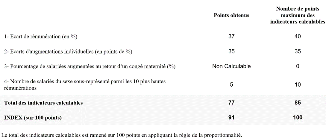 Pour la période de référence 2025, l’index de la SA LOUIS ROYER est de 91 points sur 100